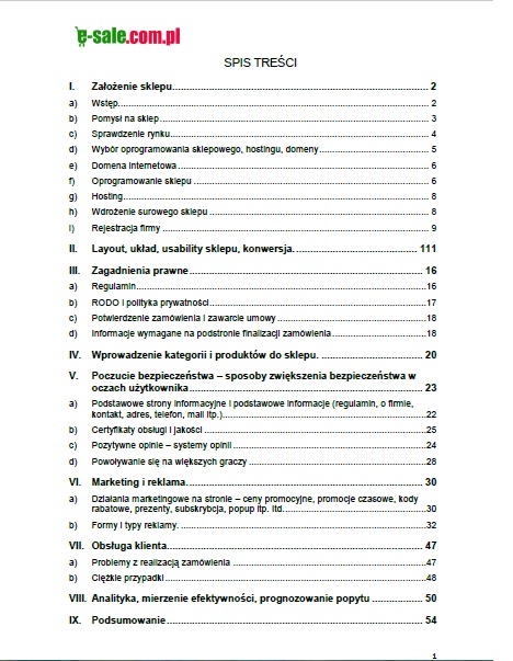 Jak widzisz ebook zawiera praktycznie wszystkie niezbędne informacje, które mogą przydać się do prowadzenia skutecznego sklepu internetowego. Co więcej podaję wiele przykładów tekstowych i graficznych. W rozdziale marketing i reklama omówione są krok po kroku możliwe typy reklamy, także jeśli szukasz nowych źródeł klientów te informacje także będą przydatne nawet dla osób które już otworzyły sklep internetowy.